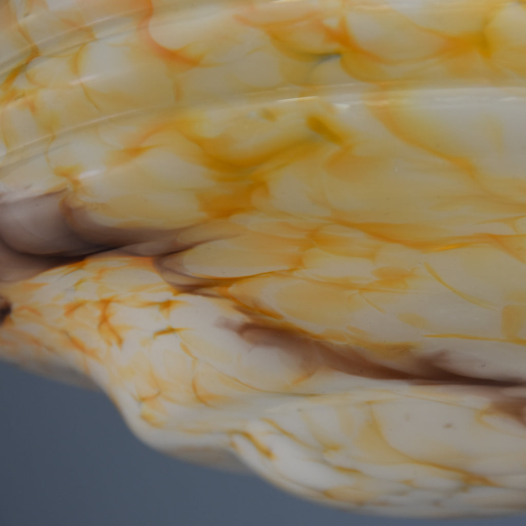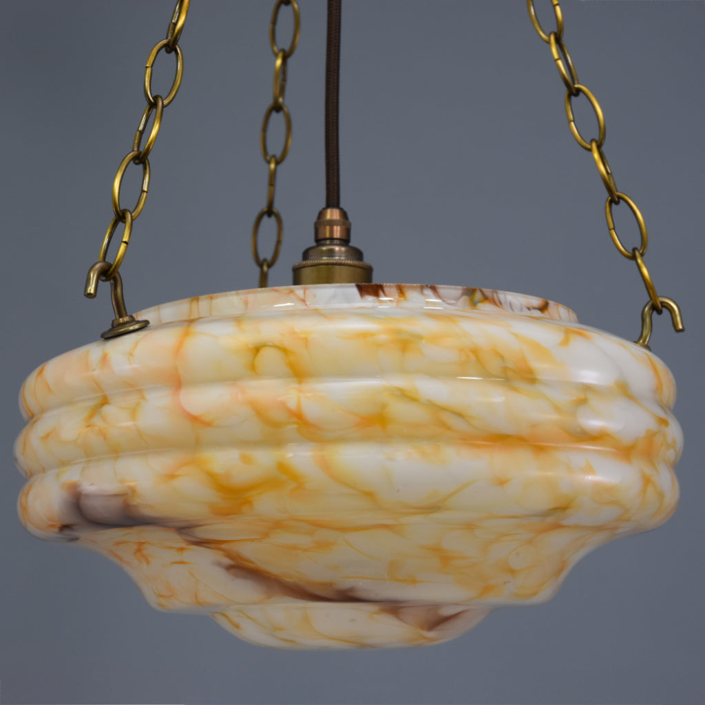 1930s-1950s vintage flycatcher/plafonnier hanging ceiling light with orange and brown marbling on a semi-opaque cream background