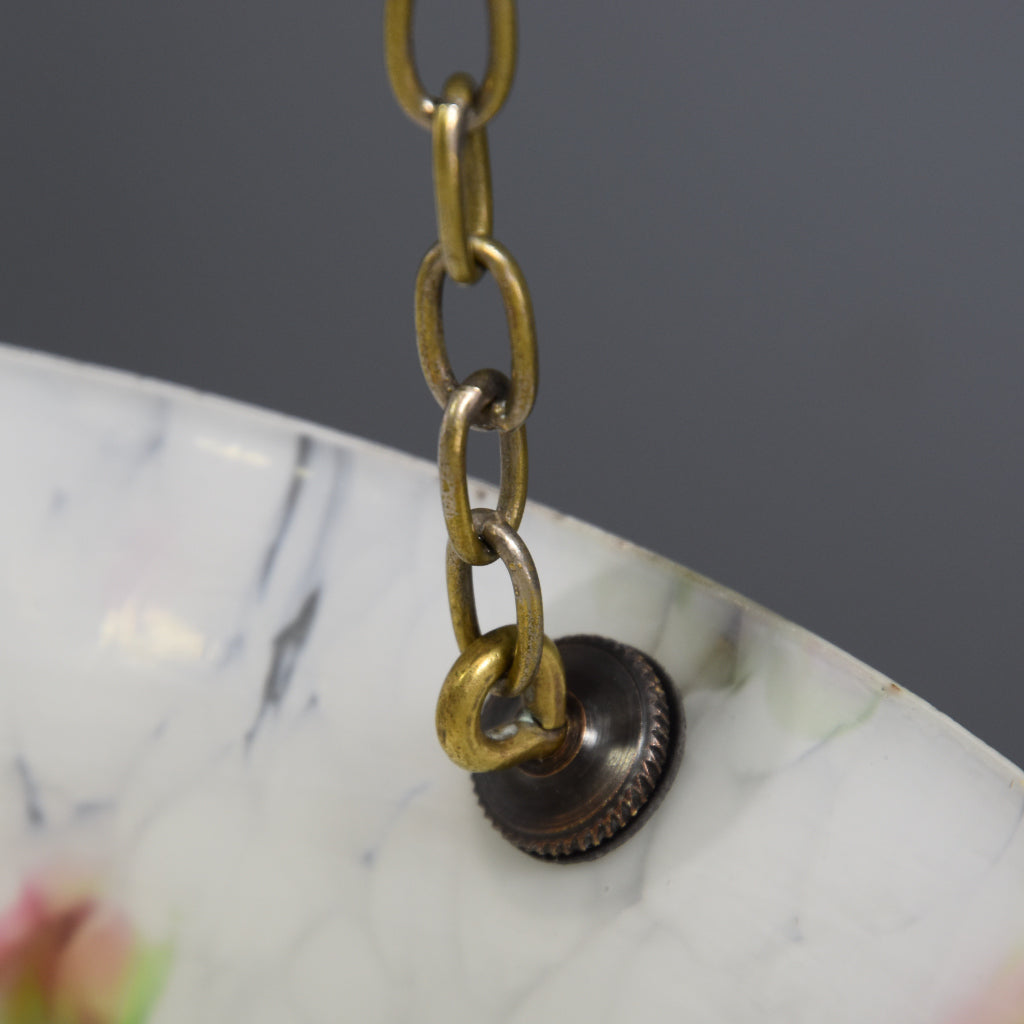 1930s-1950s vintage glass flycatcher with original aged brass chains and fittings