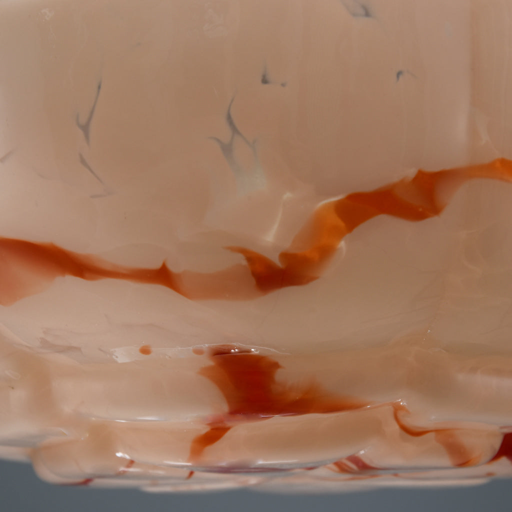 Large flycatcher ceiling light with beautiful sculptured shape and red marbling on semi-opaque pink glass