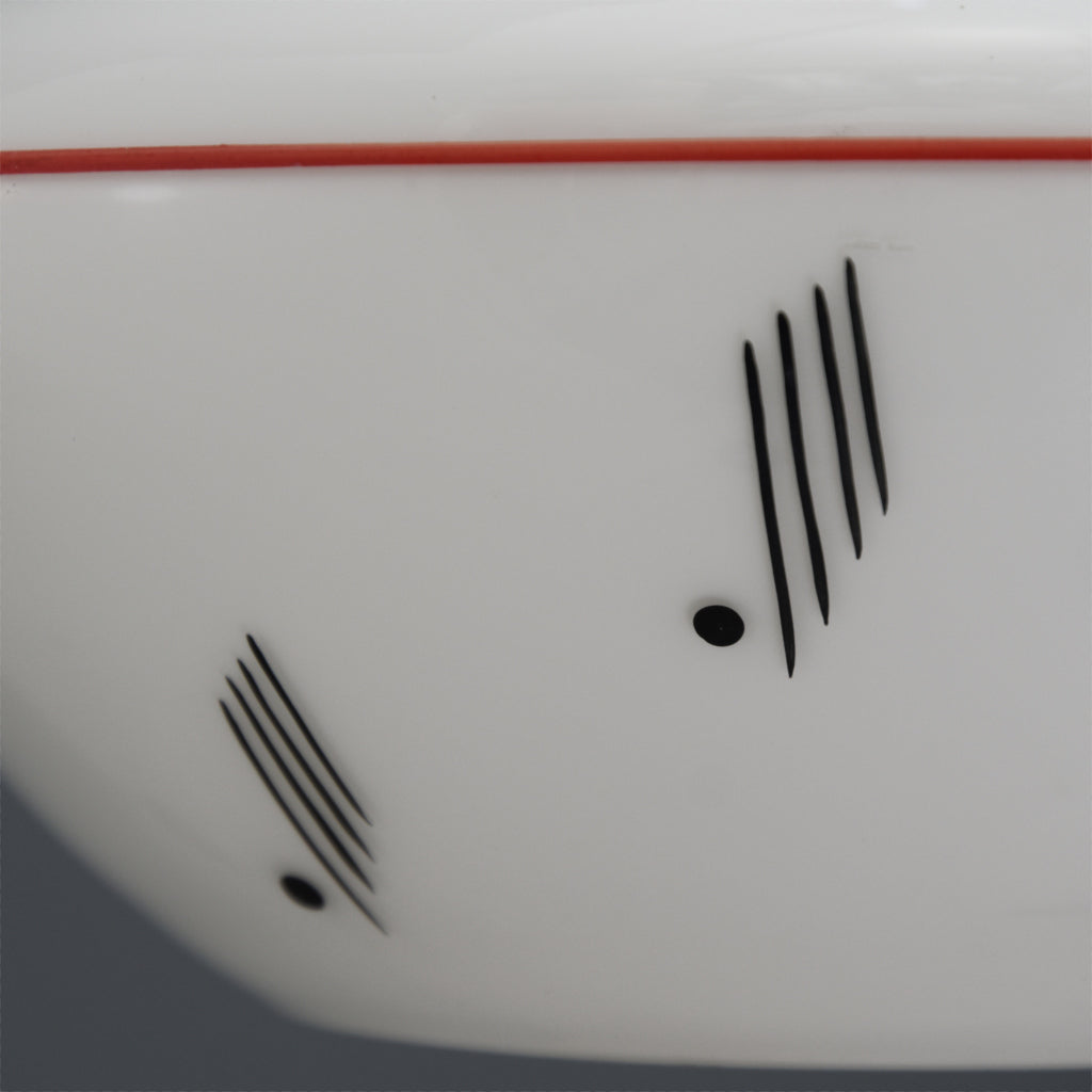 1950s-1960s pair of Mid-Century Modern white glasss ceiling lights with red line and black motif