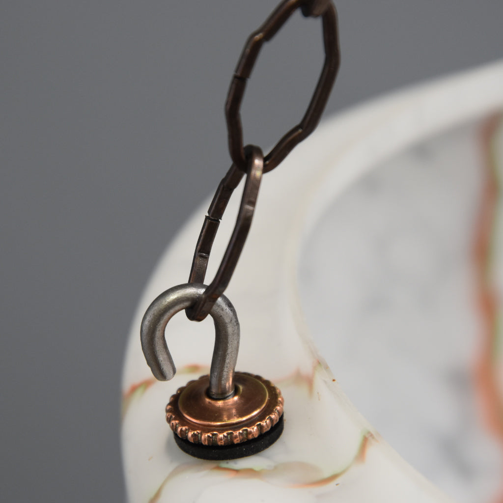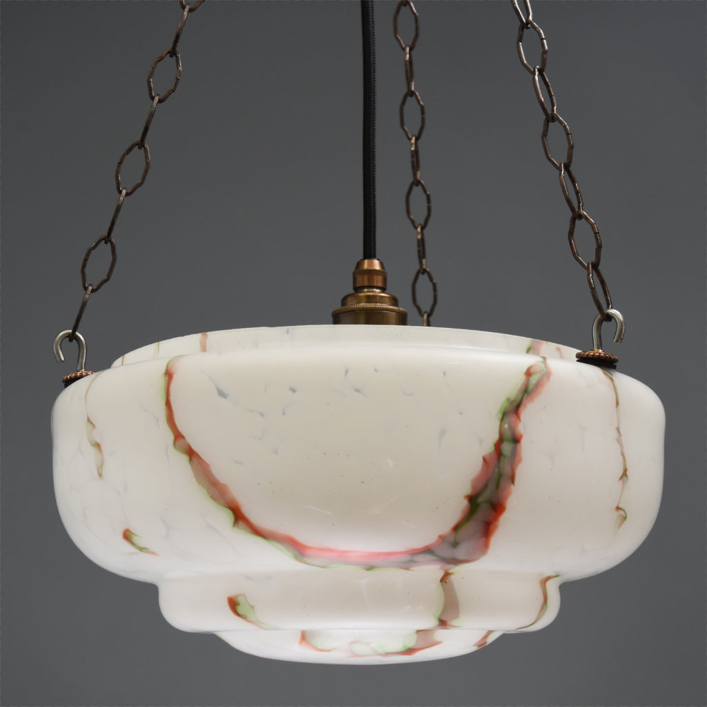1920s-1940s Flycatcher ceiling light with beautiful red and green marbling and original decorative shade hooks