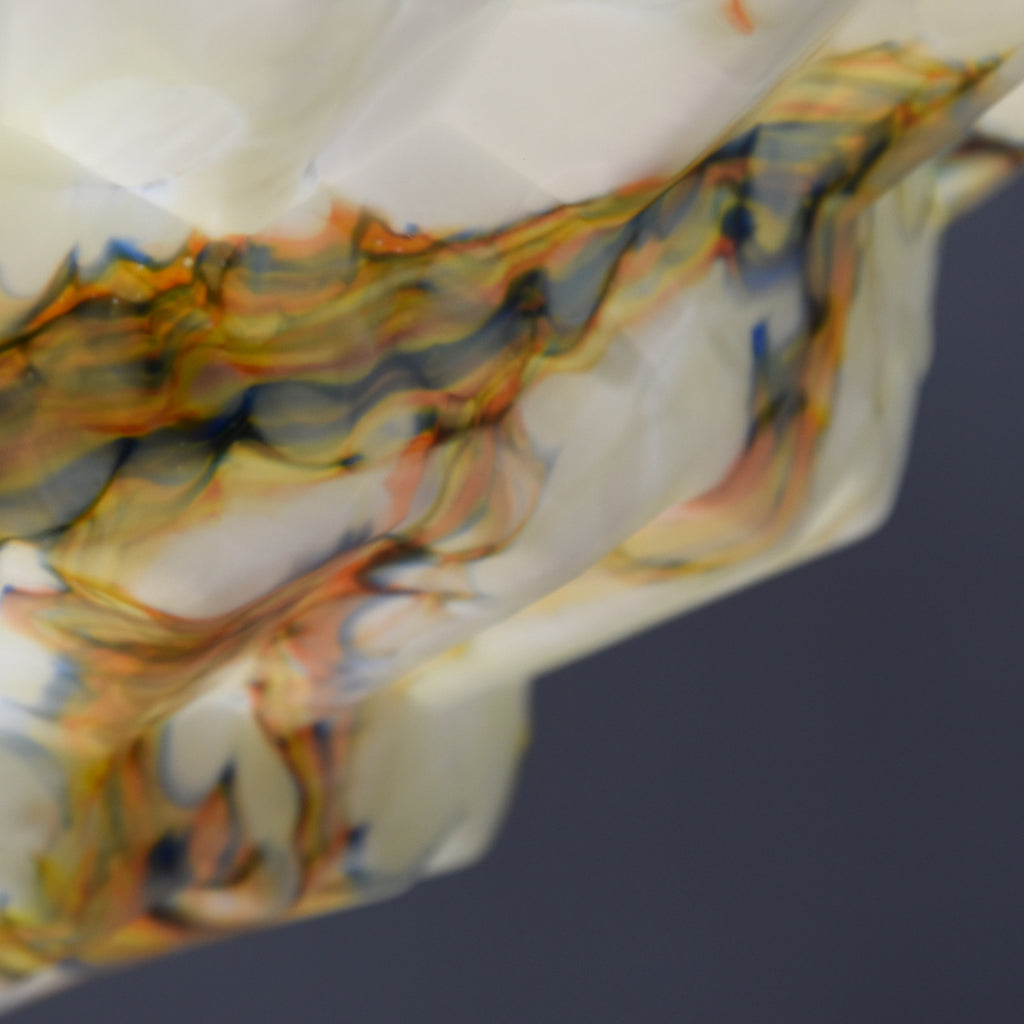 Impressive extra large art deco glass flycatcher light with orange, amber, black and white marbling