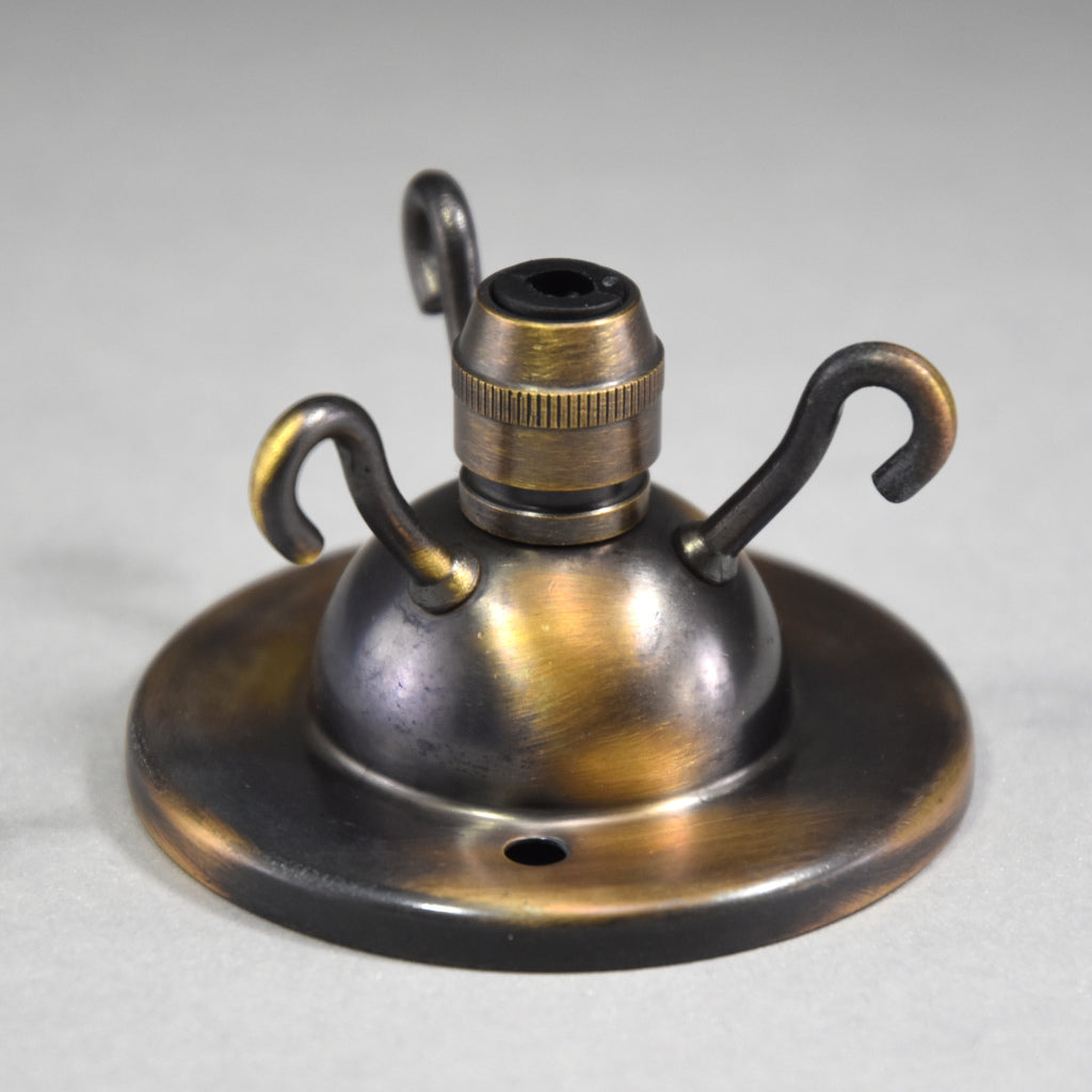 The double wooden pattress is supplied in natural pine and can be painted to suit your ceiling colour or contrast with it (If you have an existing plaster ceiling rose your electrician can just use the metal 3 hook ceiling plate).